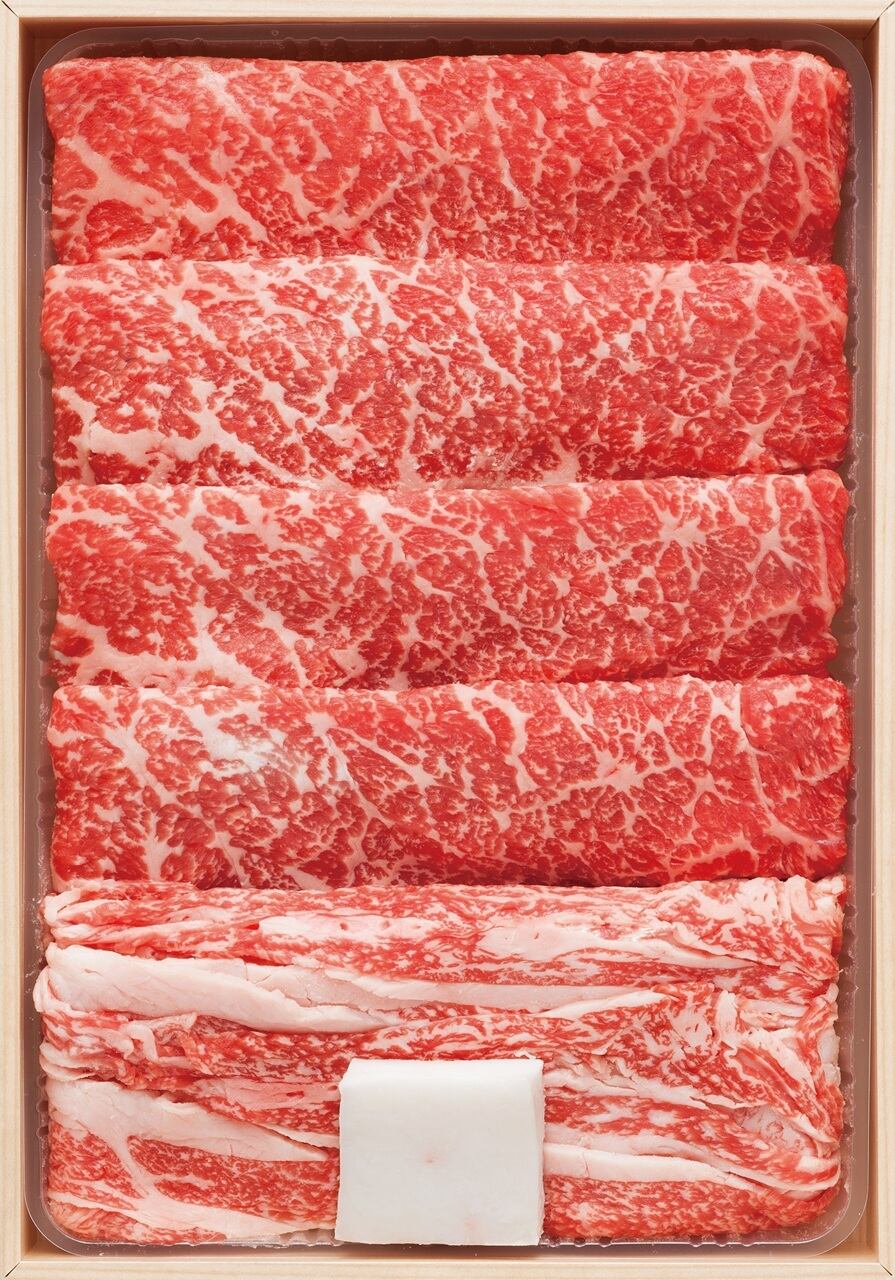 赤身の旨味が凝縮されたモモ肉と、ほどよく脂ののったバラ肉は、すき焼きにすれば口の中でとろける旨味と芳醇な香りが広がります。