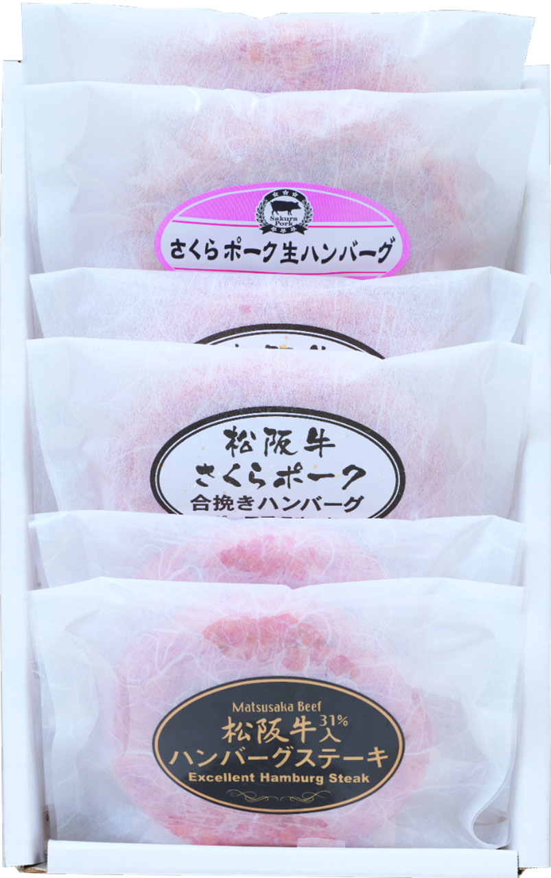 ・松阪牛、さくらポークを使用した合挽冷凍の生ハンバーグ