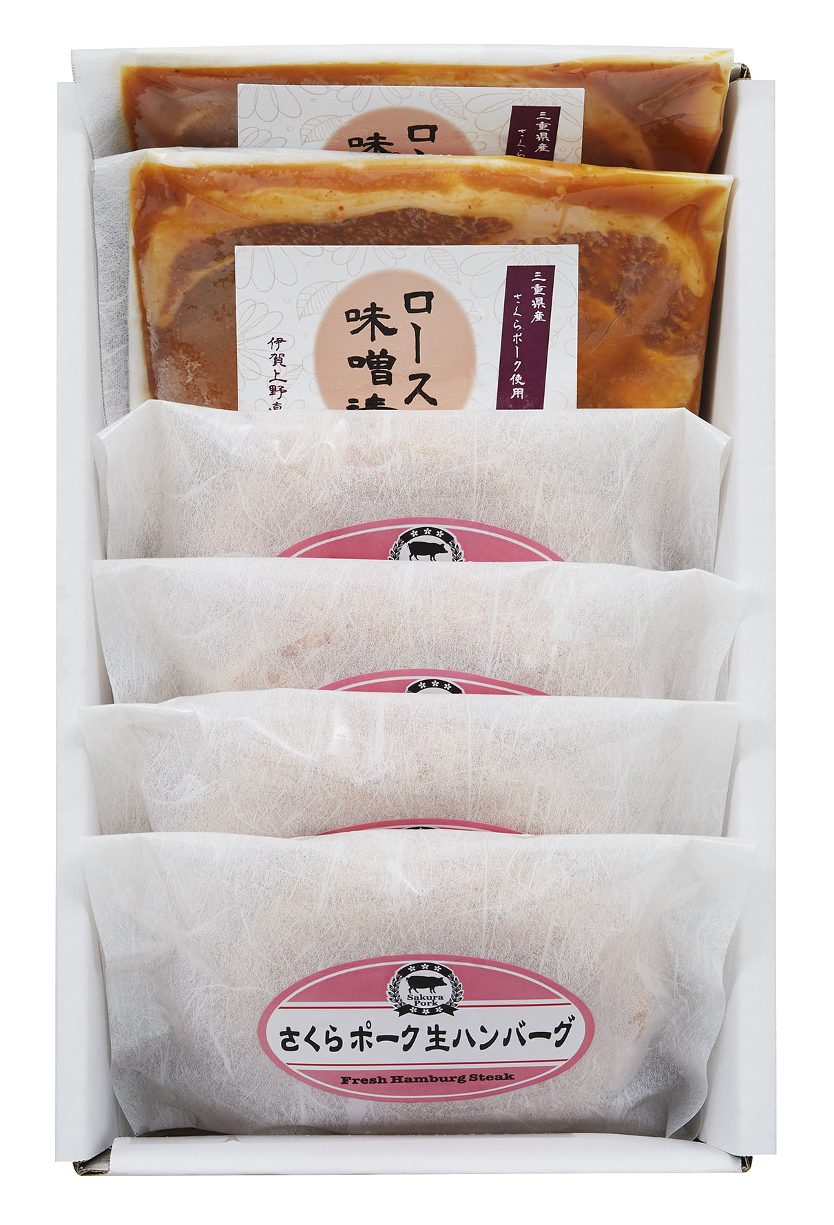 三重県内の指定牧場で丁寧に育てられたブランド豚「さくらポーク」は、三元豚(3種類の品種を掛け合わせて生まれた豚)ならではの、脂の甘み、肉の柔らかさ、ジューシーさが絶妙に調和した理想の豚肉です。さらに、植物性の飼料でストレスなく育てられたさくらポークは、脂に上品な甘みが宿り、肉本来の旨味を存分に味わえます。 そんな「さくらポーク」のロース肉を贅沢にも100%使用した、こだわりの味噌漬けとハンバーグのセット。ご家庭での特別な食卓はもちろん、大切な方への贈り物にも喜ばれる一品です。